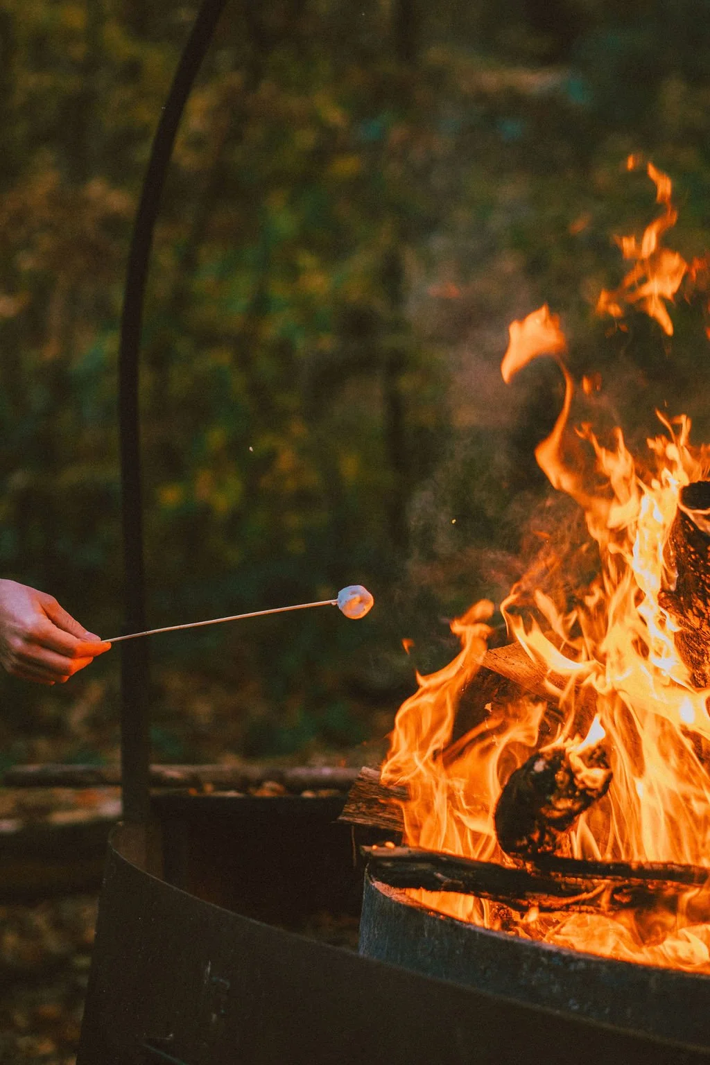 Faire griller un chamallow au feu de bois… avant de vous faire livrer votre panier repas en cabane