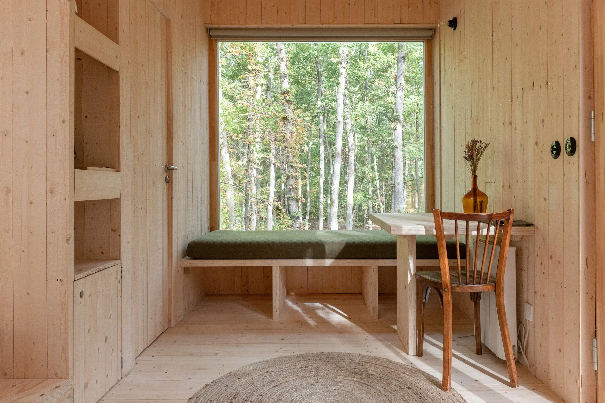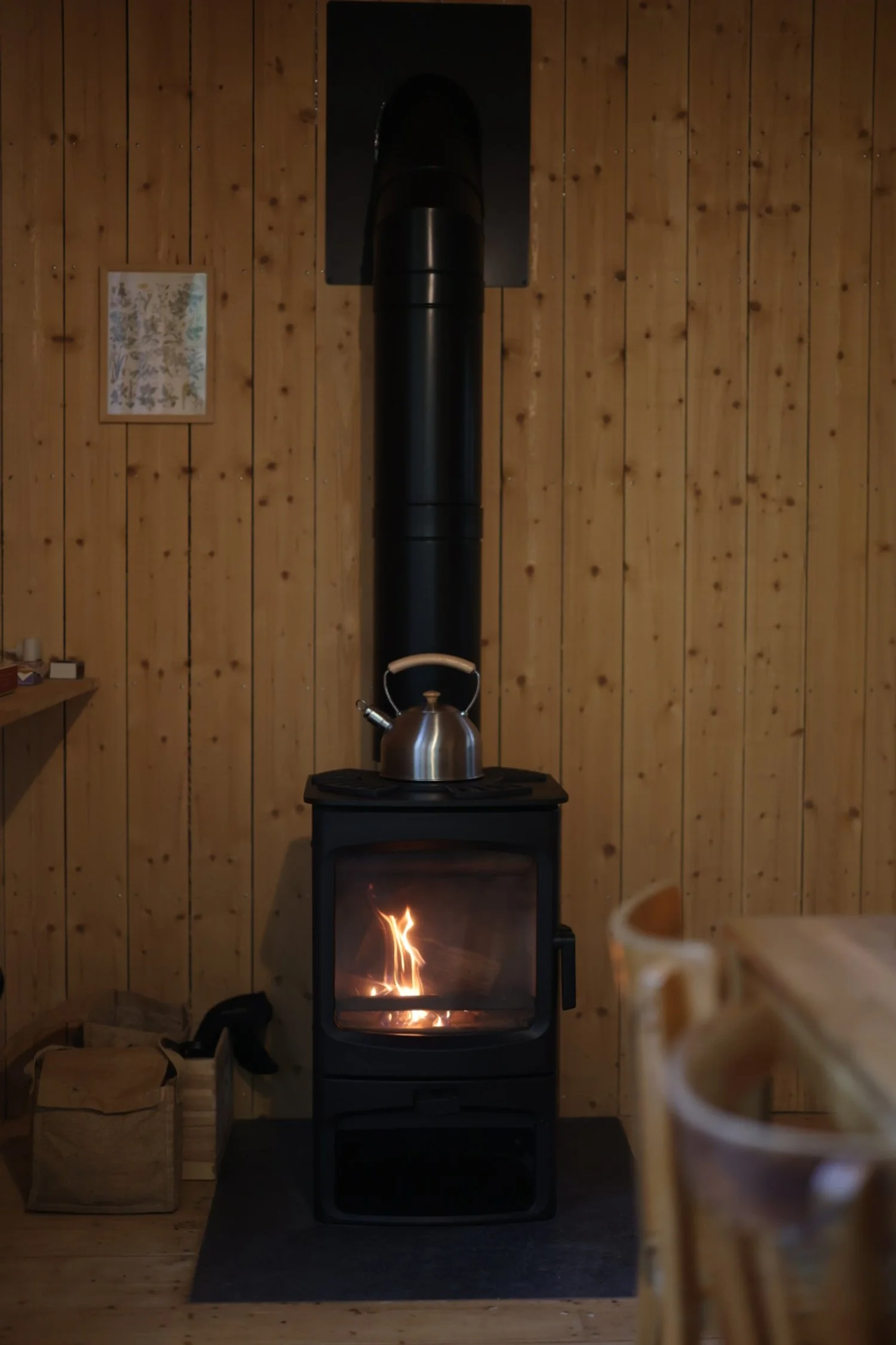 Toutes les cabanes ont des poêles à bois (certaines des bains nordiques) et de grandes fenêtres pour observer la Nature, avoir la sensation de vivre dehors, dedans.